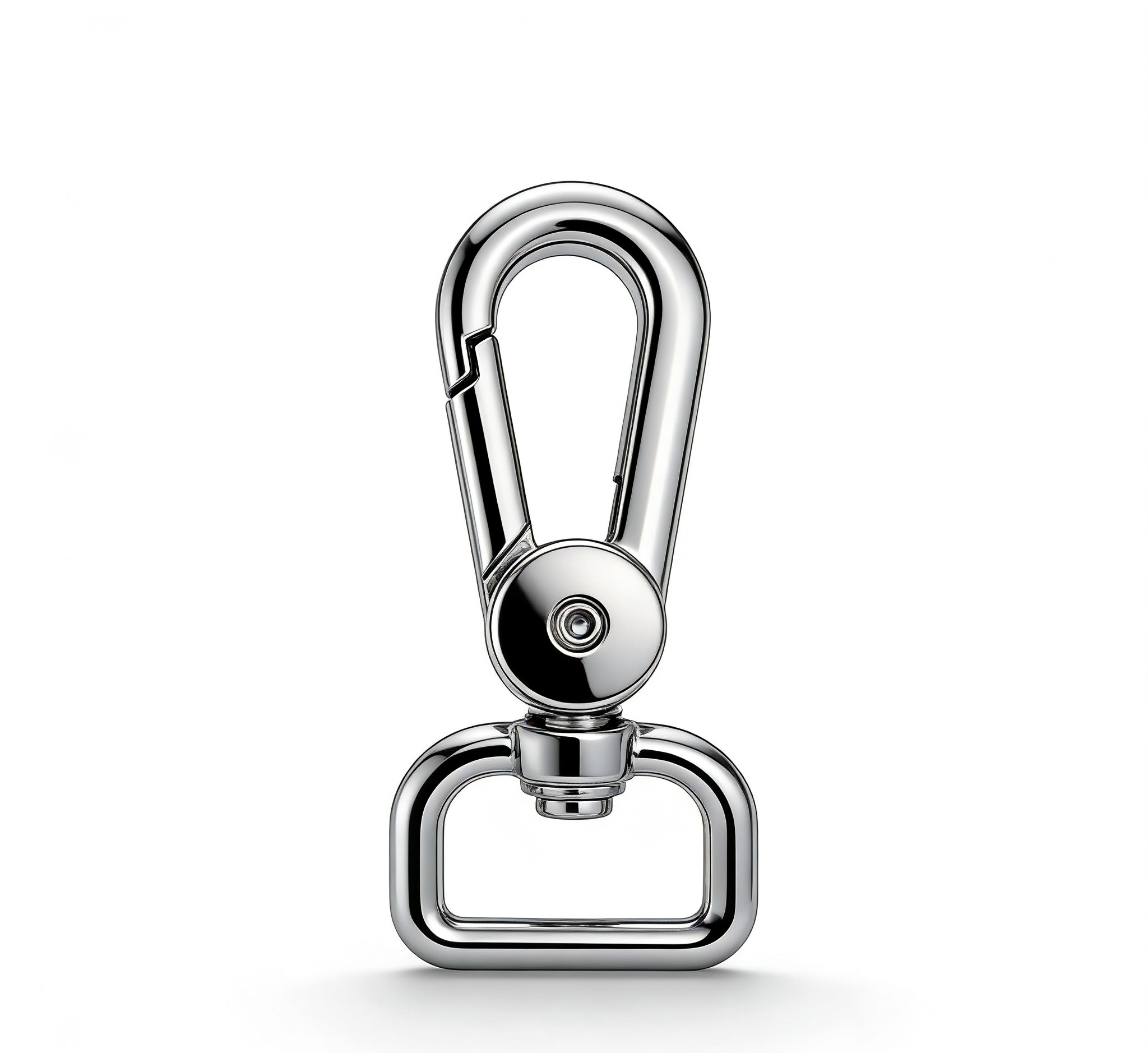 Stand out from the crowd with hardware that doubles as a statement piece. This innovative swivel snap hook moves away from traditional designs by incorporating a bold, circular pivot joint. Combined with a sleek, triggerless push-gate mechanism, it offers a completely snag-free profile that protects delicate fabrics while exuding an industrial, avant-garde aesthetic.